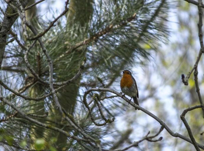 Keywords: robin bird nature wildlife animal red tree single breast small garden wild