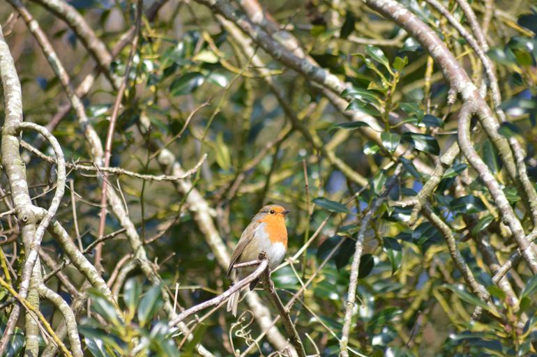 Keywords: robin bird wildlife songbird redbreast perched tree branches