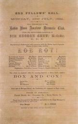 | Keywords: document text writing Arrangement of text, listing the cast of each play. Quantity: 1 b&w art print(s) on silk programme.. Physical Description: Letterpress on pink silk, 203 x 132 mm. Evening Post (Wellington, N.Z.). Robin Hood Amateur Dramatic Club :Odd Fellows' Hall Monday 23rd July 1866. First performance of the Robin Hood Amateur Dramatic Club under the distinguised patronage of Sir George Grey ... "Rob Roy!" ... "Box and Cox!". Printed at the office of the Evening Post. 1866.. Ref: Eph-A-DRAMA-1866-01. Alexander Turnbull Library, Wellington, New Zealand. natlib.govt.nz/records/23226680 Arrangement of text, listing the cast of each play. Quantity: 1 b&w art print(s) on silk programme.. Physical Description: Letterpress on pink silk, 203 x 132 mm. Evening Post (Wellington, N.Z.). Robin Hood Amateur Dramatic Club :Odd Fellows' Hall Monday 23rd July 1866. First performance of the Robin Hood Amateur Dramatic Club under the distinguised patronage of Sir George Grey ... "Rob Roy!" ... "Box and Cox!". Printed at the office of the Evening Post. 1866.. Ref: Eph-A-DRAMA-1866-01. Alexander Turnbull Library, Wellington, New Zealand. natlib.govt.nz/records/23226680 |