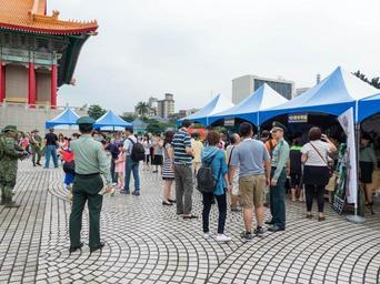 | Keywords: ROCA Recruit Booths in CKS Memorial Hall Plaza 20140607.jpg zh-tw 黃埔建軍 十 年 念大 , 家音樂廳 南的陸軍人才募集攤位 2014-06-07 13 01 22 Own 玄史生 Republic of China Army Forces 90th Anniversary Republic of China Army recruitment Standing people Blue tents Tents in Taiwan 玄史生写 文庫 Taken with Leica V-Lux 4 Uploaded with UploadWizard cc-zero |