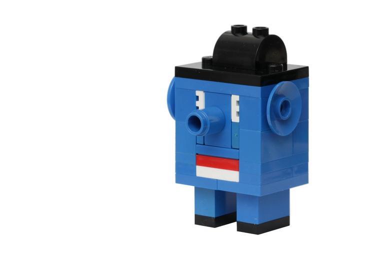 Keywords: canon 100mm canon100mm lego robot blue silly blocky moc white background Robotic Organism for Cuddling by Kids. Robotic Organism for Cuddling by Kids.