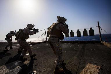 Keywords: Rock and Fire with It (9321540696).jpg Marines assigned to Scout Sniper Platoon Battalion Landing Team 3/2 26th Marine Expeditionary Unit MEU conduct an M4 Carbine live-fire exercise on the flight deck of the USS Kearsarge at sea July 18 2013 The 26th MEU is a Marine Air-Ground Task Force forward-deployed to the U S 5th Fleet area of responsibility aboard the Kearsarge Amphibious Ready Group serving as a sea-based expeditionary crisis response force capable of conducting amphibious operations across the full range of military operations U S Marine Corps photo by Sgt Christopher Q Stone/Released https //www flickr com/photos/marine_corps/9321540696/ Rock and Fire with It 2013-07-18 08 29 https //www flickr com/people/40927340 N03 Marines from Arlington VA United States PD-USGov United States Marine Corps Official Page https //flickr com/photos/40927340 N03/9321540696 2016-09-03 22 31 00 United States Government Work Aboard USS Kearsarge LHD-3 |