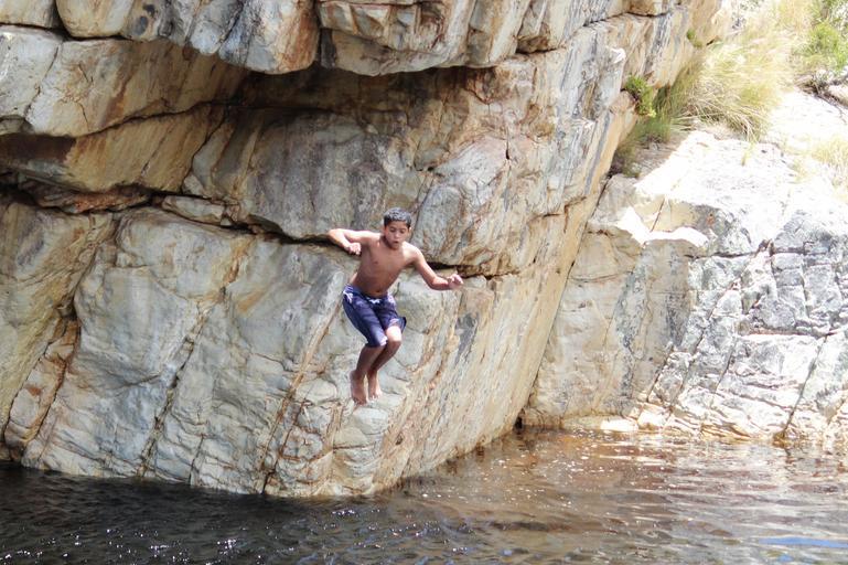 Keywords: rock jump children courageous water river dared courage south africa