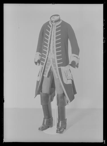 | Keywords: Rock, justaucorps, i blått kläde till Gustav IIIs franska jaktdräkt - Livrustkammaren - 78988.tif LSH artwork LeDuc Skräddare sv Rock i blått kläde med stora galondekorerade fickor och gudkantade knapphål längs med båda framkanterna Modellen är figurnära med hög krage har svängd framkant som öppnar sig nedåt sidsömmarna är kraftigt utåtvinklade med veckade sidsprund Ärmarna är smala med stora mörkröda sammetsmanschetter dekorerade med galoner Klädet är i en mycket fin kvalitet troligen fransktillverkat Rocken har flera öppet skurna kanter tex kanten nedtill och kanten fram Kragen har rött sammetsfoder och en smal guldgalon mitt fram med två runda metallknappar Rygen bak har samma förstärkning uppe i nacken som västen Kragen har rött sammetsfoder och en smal guldgalon mitt fram med två runda metallknappar Sprundet mitt bak saknar överlappning är galonkantat samt ytterligare markerat med tre guldkantade knapphål på tvären från sprundet och ut åt sidorna De översta kant i kant med guldgalonen och därefter med 5 5 cm mellanrum Där knapphålen slutar finns en slags inprovning som gör att vidden i rocken lägger sig som ett extra veck på bakstycket Sprundöppningen är 45 cm lång Sidsprunden 40 cm långa kantas också av guldgalon som även inramar knappen som sitter i sidan ovanför vecken Rocken är dekorerad med fyra sortes galoner På kragen en smal ca 1 cm bred enklare sort Längs med framkanten sitter en guldgalon 2 5 cm bred med sick sack mönster den finns runt halsen fram på båda sidor om sprundet mitt bak på båda sidor om sidosprundet I sidosprundet är de glänsande i guld Ficklocken är nästan helt galonklädda 2 5 cm galonen kantar ficklocken och innanför denna sitter en 5 7 cm bred i både silver och guld Denna breda silver och guldgalon sitter runt hela ficklocket på själva rocken vilket gör fickan mycket framträdande Rocken har 11 större knappar och 11 riktiga knapphål samt 11 oöppnade på högra sidan för att få en symmetri i dekoren Alla knapphål är ställda lite snett uppåt De är 7 cm långa och öppningen 5 cm Översta knappen sitter 5 cm ned och därefter med 5 cm mellanrum Tre metallhyskor och hakar gömmer sig i framkanten mellan kläde och foder övre hyskan saknas Ärmarna är snäva med överärm och underärm som är svängda Manschetten är påsydd vidare än själva ärmen den är ca 15-16cm bred och utsidan är i röd sammet Längs kanten sitter en guldgalon 2 5 cm bred och de lodräta sömmarna täcks av en bredare guldgalon 3 5 cm som endast förekommer här på plagget Mellan guldgalonerna sitter den breda silver/guld galonen samma som runt fickorna den är lagt i bågmönster vilket gör att den har sytts fats med småveck i innerkurvorna Manchetten knäpps med två knappar fram och en bak samma knappar som på rocken Knapparna är förgyllda och har ett flätat mönster på ovansidan kärnan är av trä Antal knappar 27 st 2 mindre och 25 större 16 mm Galoner 14 meter och 61 cm 827 cm 2 5 cm br 425cm 5 7 cm br 80 cm 3 5 cm br 75 cm 1 cm br Foder i rött ylle Inga spår av ändringar Kilar i sidosprundets veck i övrigt inga skarvar Sidovecken är ihopsydda likaså vecken bak Troligen gjort senare Kragen är fodrad i röd sammet Fickpåsarna i grovt naturfärgat linne eller hampa Dräkten användes av Gustav III som kronprins då han besökte Ludvig XV för att deltaga i den första hovjakten i Versailles 1771 02 15 Enligt brev till Lovisa Ulrika från Gustav III så kan detta vara den dräkt som Ludvig skänkt Gustav för detta tillfälle 1790 års klädkammarinventarium nämner denna dräkt under No 110 citat från Gudruns avskrift En Jagt Klädning nyttjad då Konungen såsom Kron Prins År 1771 var i Frankrike bestående af Råck Väst och Böxor Råcken af Mörkblått Kläde med Krusiga förgyllda Knappar samt Krage och uppslag af Rödt Sammet med Gulld- och Silfver Galoner fordrad med rödt Ratin Västen af Skarlakan med förgyllda knappar och Gulld-Galoner fordrad med hvitt Sarge de Sojie Böxorne af Skarlakan med silkes Knäband och guldtrådsknappar En tillhörig Hirschfängare med stålfäste i Basrelief incrusterad med guld och gehäng af sämsk med guldgalon original caption Gustav III s franska resa 1771 broadcloth Färg blå d1 - dräkt - yttermaterial material kläde - gold Färg guld d4 - dräkt - passpoaler band kantning uppslag material guldgalon - silver Färg silver d4 - dräkt - passpoaler band kantning uppslag material silvergalon - woolen Färg röd d2 - dräkt - foder material ylletyg - velvet Färg röd d6 - dräkt - krage epåletter manschetter material silkesammet size mm 870 midja size mm 140 manschett size mm 1461 galoner size mm 1080 size mm 1070 size mm 3840 nedtill size mm 600 ärm LRK Gustav III av Sverige Idrotts- o turistutställningen i Berlin 1894 Jakt 1973 Läckö slott Livrustkammarens basutställning 1978 Kungligt klädd 1987-1989 Gustav III - Kläder för tid och evighet 1998 Jakten - konstnärens motiv - jägarens mål 2003 l'Homme Paré 2005-2006 Trogna vänner - Kungliga hästar och hundar 2011-2012 Museiverket/Finlands nationalmuseum Fêtes et divertissement á la cour 2016-2017 Chäteau de Versailles Visitors to Versailles 1682-1789 2017-2018 Chäteau de Versailles Visitors to Versailles 1682-1789 2018 Metropolitan Museum place of origin original filename LN_B16559_019439 48200 inventory number LRK 11596 78988 CC0 Rock justaucorps i blått kläde till Gustav IIIs franska jaktdräkt - Livrustkammaren - 78988-negative tif <gallery caption Different images of same object > File Rock justaucorps i blått kläde till Gustav IIIs franska jaktdräkt - Livrustkammaren - 10503 tif File Rock justaucorps i blått kläde till Gustav IIIs franska jaktdräkt - Livrustkammaren - 19065 tif File Rock justaucorps i blått kläde till Gustav IIIs franska jaktdräkt - Livrustkammaren - 61867 tif File Rock justaucorps i blått kläde till Gustav IIIs franska j