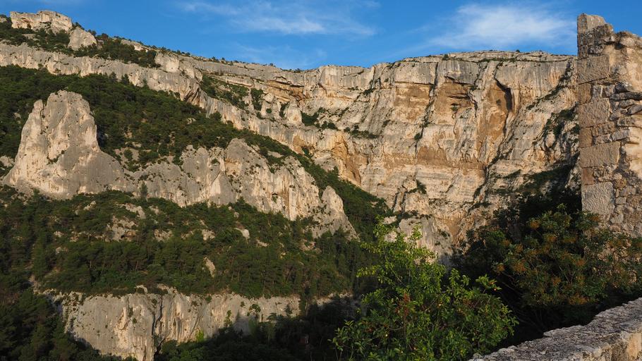 Keywords: rock karst area karst landscape ruin of philippe de cabassolle castle burgruine ruin fontaine-de-vaucluse france provence castle of philippe de cabassolle gorge