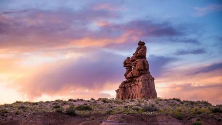 Keywords: rock scluptural landmark national park colored sky sunset red stone desert scenic beautiful