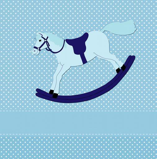 Keywords: rocking horse toy horse rocking baby cute card template blue white polka dots spots background scrapbooking card making boy birth announcement new