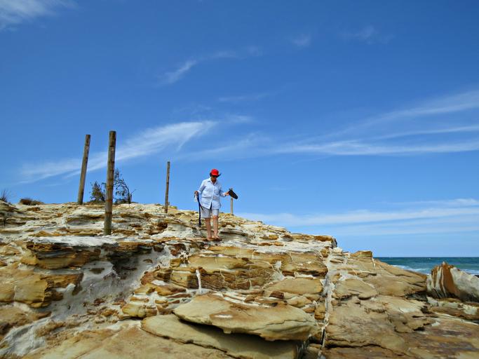 Keywords: rocks beach lady water ocean nature sea landscape summer sky blue coast sand sun stone coastline scenic shore natural clouds queensland australia