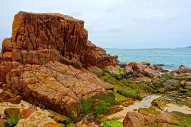 Keywords: rocky outcrop red coast wild seaside rocks coastline scenery rock landscape seascape