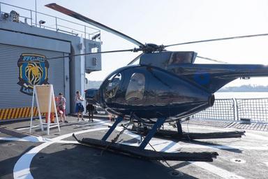 Keywords: ROCN Hughes 500 6910 Carried on Lan Yang (FFG-935) Helicopter Deck Left View 20141123.jpg zh-tw 巡防艦蘭陽(FFG-935)艦尾直升機甲 上搭載的休斯500直升機6910左測與機庫, 於2014年左營軍港營 開放活動 2014-11-23 14 36 46 Own 玄史生 other versions Hughes 500 in service with ROCN ROCN Lan Yang FFG-935 2014 Zuoying Naval Base Open Day 玄史生写 文庫 Taken with Fujifilm X-T1 Uploaded with UploadWizard cc-zero |