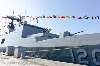 Keywords: ROCN Wu Chang (PFG-1207) Shipped in No.5 East Pier, Zuoying Naval Base 20141123b.jpg zh-tw 2014年左營軍港營 開放活動, 五號碼頭的巡防艦武昌(PFG-1207)右舷前部特寫,留意換 試製新型匿蹤砲盾的OTO Melara 76mm快砲 2014-11-23 13 55 28 Own 玄史生 other versions ROCN Wu Chang PFG-1207 2014 Zuoying Naval Base Open Day 玄史生写 文庫 Taken with Nikon Coolpix A Uploaded with UploadWizard cc-zero
