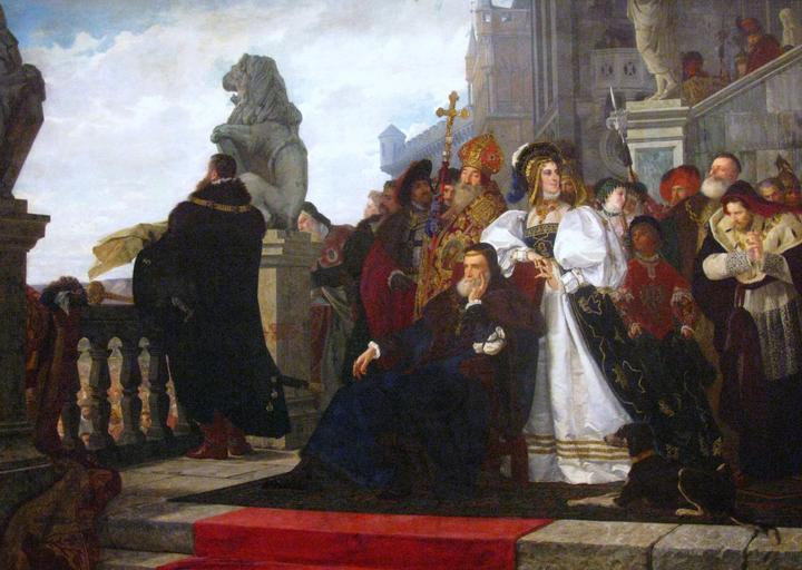 | Keywords: Rodakowski Chicken War.png Artwork Creator Henryk Rodakowski LangSwitch 1537 in Poland King Sigismund the Old and his Court during the Noblemen's Rebellion Over the King triumphant Queen Bona by the railing General Jan Tarnowski speaks to the rebellious noblemen Rok 1537 król Zygmunt Stary i jego dwór na lwowskim zamku słuchają przemówienia hetmana Jana Tarnowskiego do zbuntowanej szlachty 1872 oil canvas cm 192 5 265 Institution National Museum Warsaw 1 accession number MP 432 object history credit line H Rodakowski 1872 signature/date Image taken by User Mathiasrex Maciej Szczepańczyk See below PD-old-100 DEFAULTSORT 1872; Chicken War Paintings by Henryk Rodakowski in the National Museum in Warsaw Sigismund I of Poland Bona Sforza Kokosza War |