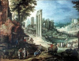 Keywords: Roemische Ruinenlandschaft Paul Bril.jpg Artwork creator Paul Bril Blick auf das Forum Romanum mit den Säulen des Castor- und Polluxtempels und der Hadrianischen Basilika 1600 oil copper cm 21 5 29 5 Institution Gemäldegalerie Alte Meister accession number 858 object history credit line http //skd-online-collection skd museum/de/contents/showArtist id 240503 Staatliche Kunstsammlungen Dresden Gemäldegalerie Dresden Scan using old Original Fälschung -Pictures from HörZu 42/1987 S 162 10 12 2008 PD-old-100 DEFAULTSORT Bril Paul; Landscape 1600; Alte Meister Dresden Paul Bril Flemish paintings in the Gemäldegalerie Alte Meister Dresden Paintings of Rome 1600s landscape paintings Paintings of ruins Ancient Roman temples in art People and ruins in paintings 1600s paintings in Germany Rome in the 1600s |