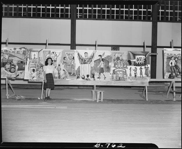| Keywords: Rohwer Relocation Center, McGehee, Arkansas. "Community Life," a mural painted by Michi Tanaka who . . . - NARA - 539591.tif Scope and content The full caption for this photograph reads Rohwer Relocation Center McGehee Arkansas Community Life a mural painted by Michi Tanaka who is standing in front of the picture General notes 539591 Local identifier 210-G-G762 Department of the Interior War Relocation Authority 02/16/1944 - 06/30/1946 Still Picture Records Section Special Media Archives Services Division NWCS-S National Archives at College Park 8601 Adelphi Road College Park MD 20740-6001 05/1944 Record group Record Group 210 Records of the War Relocation Authority 1941 - 1989 Record group ARC 537 Central Photographic File of the War Relocation Authority compiled 1942 - 1945 Series ARC 536000 File unit File unit ARC Variant control numbers NAIL Control Number NWDNS-210-G-G762 yes Other versions <gallery> File Rohwer_Relocation_Center _McGehee _Arkansas _ Community_Life _a_mural_painted_by_Michi_Tanaka_who_ _ _ _-_NARA_-_539591 tif tif File Rohwer_Relocation_Center _McGehee _Arkansas _ Community_Life _a_mural_painted_by_Michi_Tanaka_who_ _ _ _-_NARA_-_539591 jpg jpg </gallery> NARA-cooperation PD-USGov Rohwer War Relocation Center Murals in Arkansas NARA TIF images with categorized JPGs |