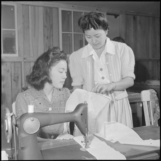 | Keywords: Rohwer Relocation Center, McGehee, Arkansas. In a sewing class at the Rohwer Center schools, Misaye . . . - NARA - 539361.jpg Scope and content The full caption for this photograph reads Rohwer Relocation Center McGehee Arkansas In a sewing class at the Rohwer Center schools Misaye Oku gets pointers from istructress Mrs Sadako Yasue Adult classes teaching subjects which contribute to the comforts or living requirements of center life are very popular with house-wives and mothers General notes 539361 Local identifier 210-G-E831 Department of the Interior War Relocation Authority 02/16/1944 - 06/30/1946 NARA-Author Parker Tom Photographer 4682167 <br /> Still Picture Records Section Special Media Archives Services Division NWCS-S National Archives at College Park 8601 Adelphi Road College Park MD 20740-6001 1943-03-07 Record group Record Group 210 Records of the War Relocation Authority 1941 - 1989 Record group ARC 537 Central Photographic File of the War Relocation Authority compiled 1942 - 1945 Series ARC 536000 File unit File unit ARC Variant control numbers NAIL Control Number NWDNS-210-G-E831 Other versions <gallery> File Rohwer_Relocation_Center _McGehee _Arkansas _In_a_sewing_class_at_the_Rohwer_Center_schools _Misaye_ _ _ _-_NARA_-_539361 tif tif File Rohwer_Relocation_Center _McGehee _Arkansas _In_a_sewing_class_at_the_Rohwer_Center_schools _Misaye_ _ _ _-_NARA_-_539361 jpg jpg </gallery> NARA-cooperation PD-USGov Rohwer War Relocation Center Girls Women at work in the United States Seamstress People of Arkansas Girls NARA images of Arkansas Rohwer 1943 in Arkansas Rohwer |