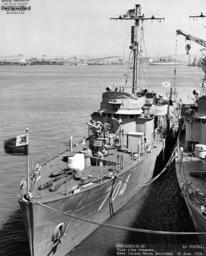 Keywords: ROKS Chiri San 2.jpg Photo NH 85498 Chiri San South Korean submarine chaser formerly USS PC-810 At the Mare Island Naval Shipyard California 16 June 1950 loading deck cargo for her impending trans-Pacific voyage to Korea Her sister ship Kum Kang San is at right Note 3 /50 dual-purpose gun mounted forward Republic of Korea flags at bow and stern mast and crow's nest Danforth anchor navigation lights ship's bell mounted on the pilothouse front and other details on and around her main deck On the original print her old U S Navy hull number 810 is visible in spot welded outline behind her Korean Navy bow number 704 USS George A Johnson DE-583 is in the left center distance Official U S Navy Photograph from the collections of the Naval Historical Center http //www history navy mil/photos/images/h85000/h85498 jpg 1950-06-16 US Navy PD-USGov-Military-Navy original upload log wikitable date/time username resolution size edit summary ---- 11 33 13 March 2008 User Mbdortmund <a href http //upload wikimedia org/wikipedia/commons/1/1d/H85498 jpg ><img alt Thumbnail for version as of 11 33 13 March 2008 src http //upload wikimedia org/wikipedia/commons/thumb/1/1d/H85498 jpg/96px-H85498 jpg width 96 height 120 border 0 /></a></td><td>590×735 107 KB <nowiki></nowiki> ---- 10 20 9 December 2007 User Bin2k1 <a href http //upload wikimedia org/wikipedia/commons/archive/1/1d/20080313113307 21H85498 jpg ><img alt Thumbnail for version as of 10 20 9 December 2007 src http //upload wikimedia org/wikipedia/commons/thumb/archive/1/1d/20080313113307 21H85498 jpg/92px-H85498 jpg width 92 height 119 border 0 /></a></td><td>590×765 113 KB <nowiki> Photo NH 85498 Chiri San South Korean submarine chaser formerly USS PC-810 At the Mare Island Naval Shipyard California 16 June 1950 loading deck cargo for her impending trans-Pacific voyage to Korea Her sister ship </nowiki> 1950 in California ROKS Chiri San ship 1943 Retouched by Mbdortmund Crow's nest |