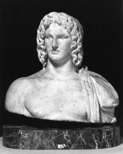 Keywords: Roman - Bust of Alexander the Great - Walters 23121.jpg Starting from his base in Macedon in northern Greece Alexander conquered the Persian Empire in 331 BC and went on to forge an empire that ultimately stretched to India He founded the city of Alexandria in that same year His charismatic personality his premature death at the age of 33 and his idealistic vision of a world unified through Greek culture led him to be associated with heroic figures such as Heracles men who through their deeds were believed to have become gods For centuries afterward Alexander was honored as a god and as the ideal monarch Portraits of Alexander the Great emphasize his heroic character The classically youthful face the anastole an arrangement of hair upswept from the brow the long wavy locks and the hole in the crown for the insertion of a star a symbol of his deification identify this work as a portrait of the ruler The Roman date is indicated by the deep grooves in the hair and the artist's rendering of the folds of the mantle as drilled channels century 2 marble cm 32 6 35 2 18 8 accession number 23 121 35044 Giovanni Dattari Sale Cairo Paris 1912 June 17-19 1912 p 39 no 317 pl xxxv Henry Walters city Baltimore Walters Art Museum Henry Walters Acquired by Henry Walters 1912 place of origin Roman Empire Walters Art Museum license Ancient Roman sculptures in the Walters Art Museum Media contributed by the Walters Art Museum needs category review |