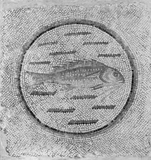 | Keywords: Roman - Floor Mosaic Fragment with Fish in a Roundel - Walters 4319.jpg With its counterpart Walters 43 18 this fragment of a mosaic floor once decorated a Roman house A bearded fish swims amidst wavy lines representing water The diagonal layout of the background tesserae marble cubes indicates that these roundels were placed in the corners of a large floor composition century 2 3 Roman marble tesserae cm 74 3 68 5 1 accession number 43 19 31520 François Goiran Sousse Tunisia Roger Goiran date and mode of acquisition unknown Walters Art Museum 1974 by purchase Museum purchase with funds provided by the S A P Fund 1974 place of origin Rome Italy Walters Art Museum license Ancient Roman art in the Walters Art Museum Media contributed by the Walters Art Museum needs category review |