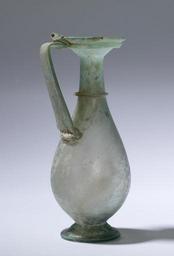 Keywords: Roman - Jug with Composite Handle - Walters 47411 - Three Quarter Left.jpg This type of jug was used to hold wine or water at the dinner table Made of free-blown glass this example is composed of a green-toned slightly iridescent glass and is decorated with a thread around the neck and another around the mouth made by trailing molten glass around the vessel when it was still hot century 4 5 Late Antique blown glass cm 18 7 2 ; at handle cm 7 75 w accession number 47 411 33564 Judge and Mrs Herbert M Moser Baltimore Walters Art Museum Gift of Judge and Mrs Herman M Moser 1956 3000 Years of Glass Treasures from The Walters Art Gallery The Walters Art Gallery Baltimore 1982 place of origin east Mediterranean Walters Art Museum license Ancient Roman art in the Walters Art Museum Media contributed by the Walters Art Museum needs category review |