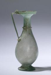 Keywords: Roman - Jug with Composite Handle - Walters 47411 - Left.jpg This type of jug was used to hold wine or water at the dinner table Made of free-blown glass this example is composed of a green-toned slightly iridescent glass and is decorated with a thread around the neck and another around the mouth made by trailing molten glass around the vessel when it was still hot century 4 5 Late Antique blown glass cm 18 7 2 ; at handle cm 7 75 w accession number 47 411 33564 Judge and Mrs Herbert M Moser Baltimore Walters Art Museum Gift of Judge and Mrs Herman M Moser 1956 3000 Years of Glass Treasures from The Walters Art Gallery The Walters Art Gallery Baltimore 1982 place of origin east Mediterranean Walters Art Museum license Ancient Roman art in the Walters Art Museum Media contributed by the Walters Art Museum needs category review |