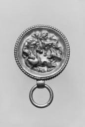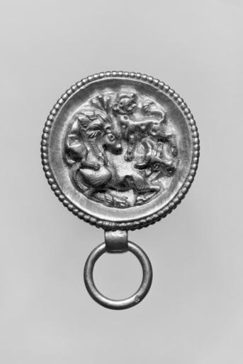 Keywords: Roman - Pendant in the Form of a Round Box with Lions Attacking a Bull - Walters 57587.jpg This pendant is decorated with repoussé and with chased details century 1 gold cm 4 1 1 6 2 9 h x w x diam accession number 57 587 35008 Henry Walters Baltimore date of acquisition unknown by purchase Walters Art Museum Henry Walters Acquired by Henry Walters Jewelry - Ancient to Modern The Walters Art Gallery Baltimore 1979-1980 place of origin Roman Empire Walters Art Museum license Ancient Roman art in the Walters Art Museum Jewellery in the Walters Art Museum Ancient Roman jewellery Pendants |