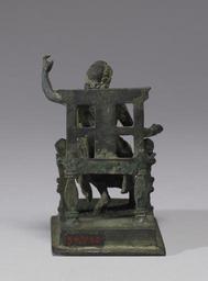 | Keywords: Roman - Seated Jupiter - Walters 54750 - Back.jpg Each Roman household had a lararium or household shrine in which small bronze figurines of deities including lares the divinities protecting the house were displayed The master of the house would make daily offerings at the shrine as well as more ceremonial offerings on important occasions This small figurine was found together with five others Walters 54 752 54 748 54 751 54 2290 and 54 749 in a lararium at Boscoreale the site of a Roman villa near Pompeii A Genius or priest stood before the household deities Isis-Fortuna Mercury a seated Jupiter Alexander Helios and a standing Jupiter These were divinities the family particularly venerated for the continuing good fortune of the household century 1 cast bronze with base cm 8 59 5 85 5 9 accession number 54 750 18946 De Prisco Boscoreale/Canessa 1906 by excavation Henry Walters Baltimore 1906 mode of acquisition unknown Walters Art Museum Henry Walters Acquired by Henry Walters 1906 Pompeii and The Roman Villa National Gallery of Art Washington; Los Angeles County Museum of Art Los Angeles 2008-2009 place of origin Roman Empire Walters Art Museum license Ancient Roman bronze statuettes from Boscoreale in the Walters Art Museum Statues of Iupiter Media contributed by the Walters Art Museum needs category review |
