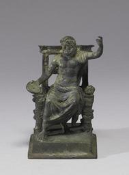 | Keywords: Roman - Seated Jupiter - Walters 54750.jpg Each Roman household had a lararium or household shrine in which small bronze figurines of deities including lares the divinities protecting the house were displayed The master of the house would make daily offerings at the shrine as well as more ceremonial offerings on important occasions This small figurine was found together with five others Walters 54 752 54 748 54 751 54 2290 and 54 749 in a lararium at Boscoreale the site of a Roman villa near Pompeii A Genius or priest stood before the household deities Isis-Fortuna Mercury a seated Jupiter Alexander Helios and a standing Jupiter These were divinities the family particularly venerated for the continuing good fortune of the household century 1 cast bronze with base cm 8 59 5 85 5 9 accession number 54 750 18946 De Prisco Boscoreale/Canessa 1906 by excavation Henry Walters Baltimore 1906 mode of acquisition unknown Walters Art Museum Henry Walters Acquired by Henry Walters 1906 Pompeii and The Roman Villa National Gallery of Art Washington; Los Angeles County Museum of Art Los Angeles 2008-2009 place of origin Roman Empire Walters Art Museum license Ancient Roman bronze statuettes from Boscoreale in the Walters Art Museum Patera Statues of Iupiter Media contributed by the Walters Art Museum needs category review |