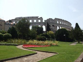 Keywords: Roman theatre Pula.JPG An old Roman amphitheatre the sixth largest in the world located in Pula in Istria County Croatia Et gammelt amfiteater det sjette største i verden beliggende i Pula i Istria fylke Kroatia Et gammelt amfiteater det sjette største i verden beliggende i Pula i regionen Istrien i Kroatien Own 2008-06-27 Erik Fløan Public Domain Amphitheatre Pula exterior Park pod Arenom Pula