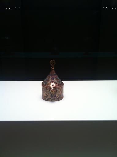 | Keywords: Romanesque Treasure of MNAC- Pixis d'Ars.jpg El recorregut de la secci贸 de rom脿nic culmina amb els objectes d 檕rfebreria que constitu茂en els tresors de les esgl茅sies medievals Aquests objectes tenien una funci贸 lit煤rgica per貌 a la vegada formaven el patrimoni material dels temples el seu sistema d 檃cumulaci贸 de riquesa Les vitrines mostren una selecci贸 de peces d 櫭╬oques diverses del fons d 檕rfebreria rom脿nica del Museu Dues es dediquen a l 檃nomenada obra de Llemotges la c猫lebre producci贸 d 檕bjectes de coure esmaltats amb centre en aquesta ciutat del nord d 橭ccit脿nia The Romanesque tour in MNAC culminates with objects of gold which are the treasures of medieval churches These objects have a liturgical function but once formed the material heritage of temples their system accumulation of wealth Showcases a selection of pieces from different periods of the fund of silver Roman Museum Two are dedicated to the work of so-called Limoges famous for producing objects with enameled copper center This northern city of Aquitaine Institution Museu Nacional d'Art de Catalunya 2012-10-25 11 41 38 own PD-Art Romanesque Treasure in the MNAC |