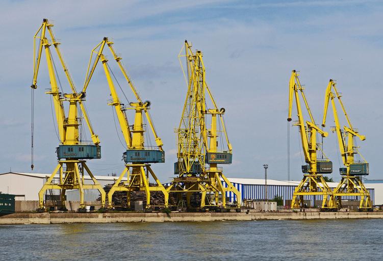 Keywords: romania bank of the danube cranes from eberswalde port harbour cranes inland waterway transport warehouses kai mole investors river current yellow-turquoise water industry envelope port handling galati Romania-cranes-1611969.jpg Hafenkräne an der Donau in Rumänien https //pixabay com/en/romania-bank-of-the-danube-1611969/ 2016-11-20 Kopiersperre <span class signature-talk ></span> Pixabay 1611969 confirmed INeverCry 2016-12-11 Pixabay files for migration/Migrated Port cranes in Romania Level-luffing cranes November 2016 in Romania |