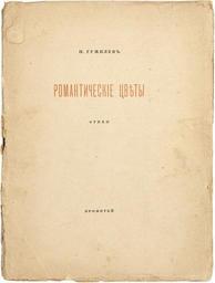 | Keywords: Romantic Flowers 1918 by Gumilev - Front Cover.jpg Cover of Romantic Flowers by Nikolay Gumilev 1918 Обложка сбо ника стихов иколая Гумилёва «Романтические цветы» 1918 cropped from http //www auction-imperia ru/wdate php t booklot i 2455 1918 author PD-old Books from Russia 1918 Book covers from Russia Nikolai Gumilev |