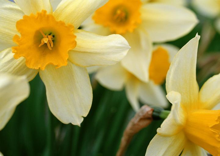 Keywords: daffodil spring narcissus green bed blooming petal flower yellow leaf growing springtime flora stem easter nature flowerbed