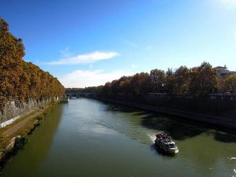 Keywords: rome boat cruise water river tiber beach nature landscape city blue italy