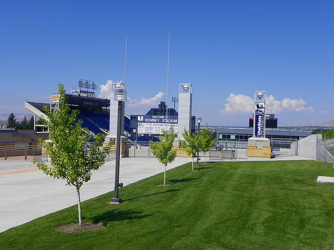 Keywords: Romney stadium usu football.jpg en Romney Stadium on the main campus of Utah State University home of the Aggies in Logan Utah own UtahStizzle 2009-07-01 Maverik Stadium