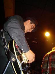 Keywords: RON ROBER.jpg es Robert guitarrista de Los Calambres en acción durante la gira del grupo en Europa Aquí en el Rock Palace de Madrid España own OscMaster 2008-09 Music of Mexico Garage surf