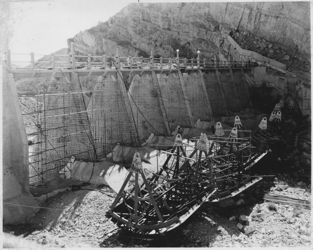 | Keywords: "Roosevelt Dam. View from downstream side of dam showing south spillway. Note concrete operations on aprons between... - NARA - 294505.jpg Scope and content Photograph from Volume One of a series of photo albums documenting the construction of Roosevelt Dam Stewart Dam and other related work on the Salt River Project in Arizona General notes 294505 Local identifier Department of the Interior Bureau of Reclamation Engineering and Research Center 05/18/1981 - 03/04/1988 NARA's Rocky Mountain Region Denver NRGA Building 48 Denver Federal Center West 6th Avenue and Kipling Street Denver CO 80225-0307 1936-08-30 Record group Record Group 115 Records of the Bureau of Reclamation 1889 - 2008 Record group ARC 444 Photograph albums compiled 1903 - 1972 Series ARC 293611 File unit File unit ARC Variant control numbers NAIL Control Number NRG-115-CONSTPHO85006-SALTRIVER216 Other versions <gallery> File Roosevelt_Dam _View_from_downstream_side_of_dam_showing_south_spillway _Note_concrete_operations_on_aprons_between _-_NARA_-_294505 tif tif File Roosevelt_Dam _View_from_downstream_side_of_dam_showing_south_spillway _Note_concrete_operations_on_aprons_between _-_NARA_-_294505 jpg jpg </gallery> NARA-cooperation PD-USGov Construction of the Roosevelt Dam |