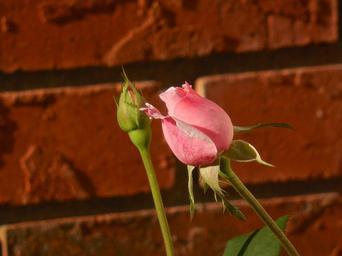 Keywords: rose bud flower floral rose blossom bud bloom nature plant pink green summer leaf petal decoration natural design red garden romantic love brick wall decorative