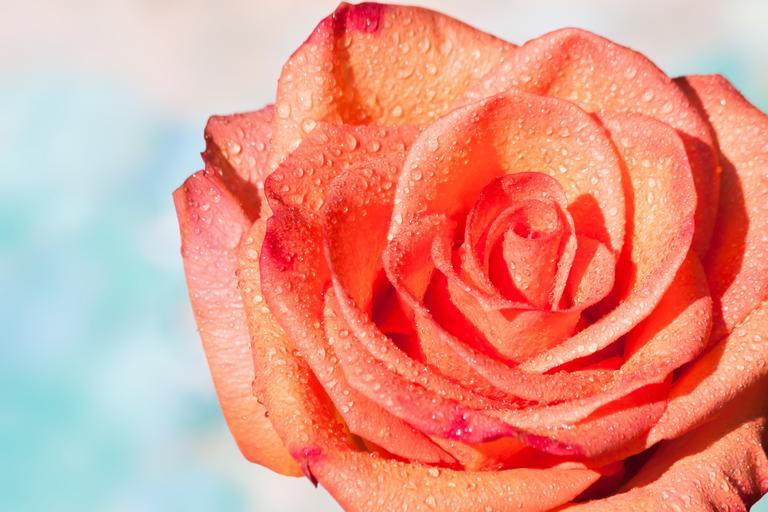 Keywords: rose composites blossom bloom summer nature plant pastellfarben fill lush decorative fragrant garden orange salmon tender fund painted turquoise macro