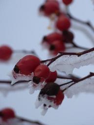 Keywords: rose hip iced plant bush red ice icy thorn spiny berry winter snow cold