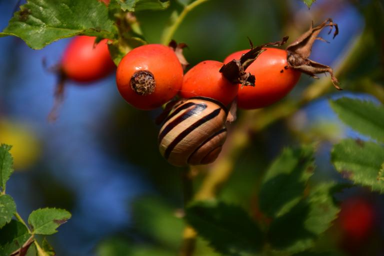 Keywords: rose hip ripe forest berry fruit plant food autumn nature bush thorns wild rose snail shell