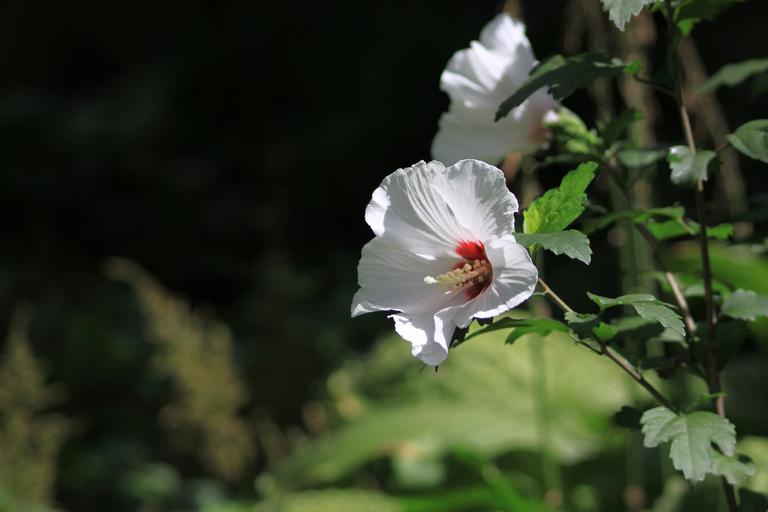 Keywords: rose sharon rose of sharon leaves green leaves white flower summer spring flower nature fauna flora pink sunshine afternoon pistil stigma style stamen anther filament