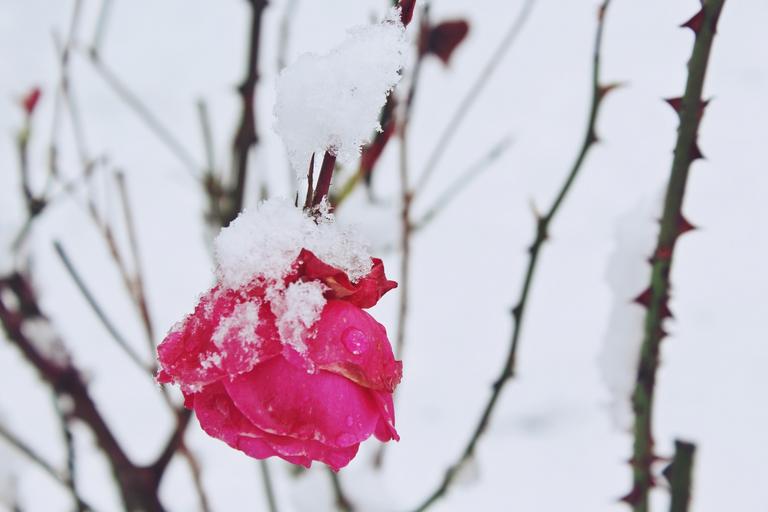 Keywords: rose snow winter nature red covered blossom bloom ice flower plant love close emotion pink branch white snowy cold thorns icy wintry frost
