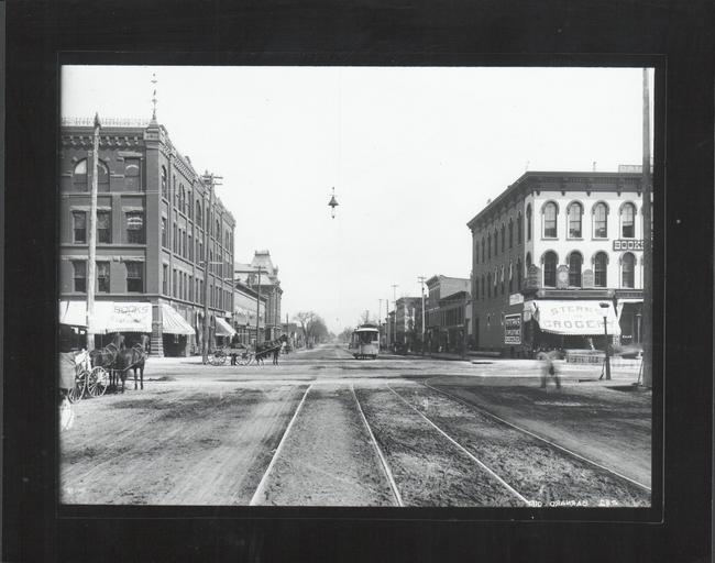 Keywords: kalamazoo history public library photography roads street-cars streetcars storefronts wagons michigan photo border blackandwhite outdoor architecture black and white Rose Street, north from Main, Kalamazoo, 1890-92. Both sides of Rose Street north from Main. KPL catalogue number P-204 Rose Street, north from Main, Kalamazoo, 1890-92. Both sides of Rose Street north from Main. KPL catalogue number P-204 |