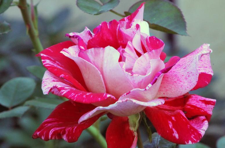Keywords: rose striped spotted flower floral nature plant leaf red pink spring colorful blossom