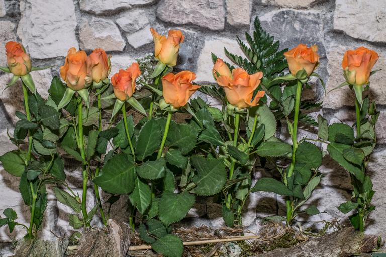 Keywords: roses flowers rosa red stone wall