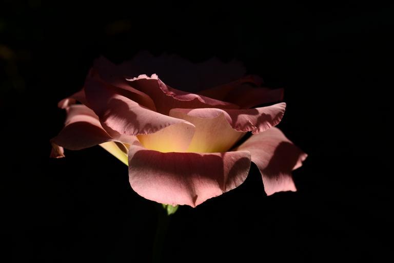 Keywords: roses pink blooms blooming flowers petals blossoms illuminated illumination lighting dark background black background romantic floral gifts peony rose delicate fresh soft decorative ornamental macro still life tender