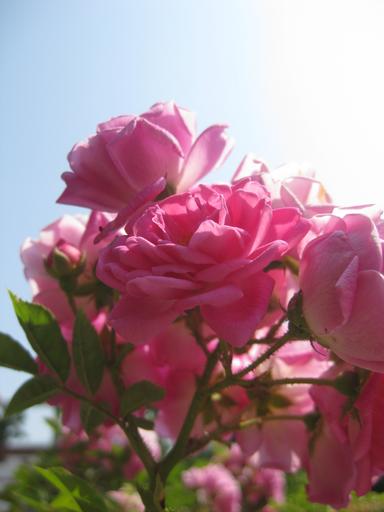 Keywords: roses summer flowers flower nature plant rose blooms pink blossom bloom bloom close partly cloudy sky