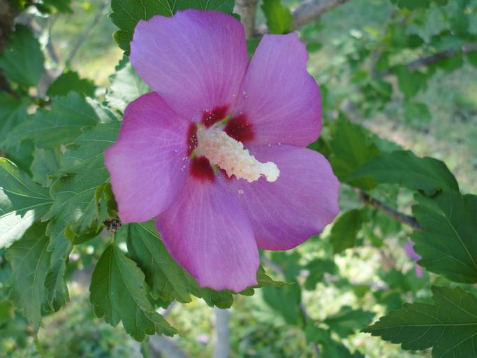 Keywords: RoseSharonFlower.JPG en Pink flower of a Hibiscus syriacus Rose of Sharon own PhytoplanktonSandwich Hibiscus syriacus Cc-zero
