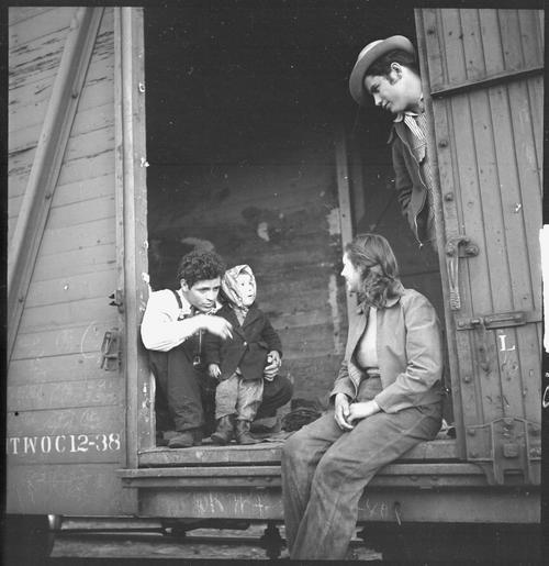 Keywords: Roseville, Placer County, California. On the Freights. Five o'clock in the morning in Roseville switch yards for... - NARA - 532082.tif Scope and content Roseville Placer County California On the Freights Five o'clock in the morning in Roseville switch yards for freight going over the Sierra A family of Mexican agricultural workers heading for Utah to top sugar beets The mother is twenty the father twenty-one the child three and the other man is the brother of the father They had slept out overnight in the grass without bedclothing; the child's overalls are wet with dew and he wears galoshes A veteran migrant he has been traveling by freight ever since he was four months old His family follow a circuit of beets and cotton through Utah Texas and California General notes 532082 Local identifier 119-CAL-18 Federal Security Agency National Youth Administration 07/01/1939 - 09/17/1942 NARA-Author Partridge Rondal 1917- Photographer 8464464 <br /> Still Picture Records Section Special Media Archives Services Division NWCS-S National Archives at College Park 8601 Adelphi Road College Park MD 20740-6001 1940-04-19 Record group Record Group 119 Records of the National Youth Administration 1934 - 1945 Record group ARC 448 Study of Youth Photographs compiled 1940 - 1940 Series ARC 532065 File unit File unit ARC Variant control numbers NAIL Control Number NWDNS-119-CAL-18 yes Other versions NARA-cooperation PD-USGov Agricultural workers Rondal Partridge
