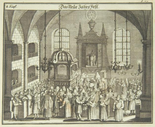 | Keywords: rites and customs ritesandcustoms leo baeck institute leobaeckinstitute jews jewish holiday rosh hashanahs roshhashanahs Description: Illustration from Juedisches Ceremoniel, a German book published in 1724. The book is a beautifully illustrated description of Jewish religious ceremonies, rites of passage and feast days, which first appeared in 1716, here in its second edition of 1724. The extremely detailed plates, by Georg Puschner, depict priestly robes, the celebrations of the New Year, Passover, the weekly Sabbath, circumcision, presentation of the first born, prayer at the synagogue, a wedding procession and a wedding, purification of the bride, the washing of the brother-in-law's feet, the feast of reconciliation, death rites, burials, as well as the procedures for other Jewish customs. Read the entire book Creator: Kirchner, Paul Christian Creator: Jungendres, Sebastian Jacob, 1684-1766 Creator: Puscher, Georg Object Origin: Nürnberg, published by Peter Conrad Monath Persistent URL: digital.cjh.org/R/?func=dbin-jump-full&amp;object_id=139313 Repository: Leo Baeck Institute, 15 West 16th Street, New York, NY 10011 Call Number: r BM 700 K57 1724 Rights Information: No known copyright restrictions; may be subject to third party rights. For more copyright information, click here. See more information about this image and others at CJH Digital Collections. Digital images created by the Gruss Lipper Digital Laboratory at the Center for Jewish History Description: Illustration from Juedisches Ceremoniel, a German book published in 1724. The book is a beautifully illustrated description of Jewish religious ceremonies, rites of passage and feast days, which first appeared in 1716, here in its second edition of 1724. The extremely detailed plates, by Georg Puschner, depict priestly robes, the celebrations of the New Year, Passover, the weekly Sabbath, circumcision, presentation of the first born, prayer at the synagogue, a wedding procession and a wedding, purification of the bride, the washing of the brother-in-law's feet, the feast of reconciliation, death rites, burials, as well as the procedures for other Jewish customs. Read the entire book Creator: Kirchner, Paul Christian Creator: Jungendres, Sebastian Jacob, 1684-1766 Creator: Puscher, Georg Object Origin: Nürnberg, published by Peter Conrad Monath Persistent URL: digital.cjh.org/R/?func=dbin-jump-full&object_id=139313 Repository: Leo Baeck Institute, 15 West 16th Street, New York, NY 10011 Call Number: r BM 700 K57 1724 Rights Information: No known copyright restrictions; may be subject to third party rights. For more copyright information, click here. See more information about this image and others at CJH Digital Collections. Digital images created by the Gruss Lipper Digital Laboratory at the Center for Jewish History <strong>Description: </strong>Illustration from Juedisches Ceremoniel, a German book published in 1724. The book is a beautifully illustrated description of Jewish religious ceremonies, rites of passage and feast days, which first appeared in 1716, here in its second edition of 1724. The extremely detailed plates, by Georg Puschner, depict priestly robes, the celebrations of the New Year, Passover, the weekly Sabbath, circumcision, presentation of the first born, prayer at the synagogue, a wedding procession and a wedding, purification of the bride, the washing of the brother-in-law's feet, the feast of reconciliation, death rites, burials, as well as the procedures for other Jewish customs.